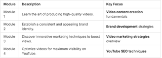 Building a successful YouTube channel is a journey. We break it down into ten key modules. First, we learn how to make great videos. Then, we focus on creating a brand that people love.